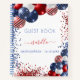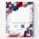 Fondo blanco. Decorada con globos de colores patrióticos en azul y blanco rojo. Espuma azul y roja. Añadir su nombre, edad o texto