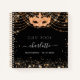 Un libro de invitaciones para una fiesta de cumpleaños temática de mascaradas en Quinceañera femenina y glamurosa. Un elegante fondo negro con un falso polvo de purpurina dorado y una máscara de mascarada. Añade tu nombre, texto. Se puede utilizar como libro de invitados o para planificar el fiesta.