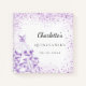 Un fondo blanco decorado con purpurinas/chispas de color violeta y lavanda y un vestido. Personalice y agregue un nombre y una fecha.