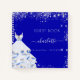 Un fondo de color azul real de moda con un falso purpurina plateado, brillo y vestido. Añade tu nombre, edad, fecha.