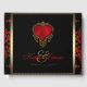 Libro de bodas rojo negro y dorado con hermoso corazón de satén rojo y dorado sobre un elegante fondo negro y dorado damasco. Agregue el texto de su elección en el estilo de fuente y color que prefiera. Este libro de bodas rojo negro y dorado se personaliza fácilmente con tu texto en la parte delantera, trasera y espina dorsal.
