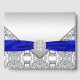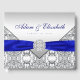 Elegante libro de invitados azul real y plateado con cinta de diamante azul real sobre un hermoso fondo de encaje plateado. Este hermoso libro de bodas azul real se personaliza fácilmente para tu evento simplemente agregando tus detalles en el estilo de letra de tu elección.