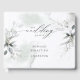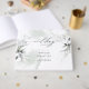 Libro de invitados de boda | Hojas etéreas de color verde-smokey rústico moderno y lavado de acuarela, este hermoso ilustracion acuarela pintado a mano ofrece tonos de verde acolchado con detalles de cuello de oro. La caligrafía manuscrita se combina con un tipo de letra minimalista y contemporáneo. Un look de moda para todas las temporadas. Esto es parte de una colección de artículos de papelería boda Watercolor Dusty Green Foliage con accesorios bodas a juego. © WhimsicalArtwork creado para el BarefootBride™