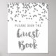 Por favor firmen nuestro cartel de libro de invitados de boda con patrón de confeti blanco y plateado con letras de estilo escrito a mano. Perfecto para bodas, baby showers, fiestas de novia, aniversarios, cumpleaños y más.
