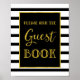 Por favor firme el cartel de señal de libro de invitados de boda en patrón de rayas doradas, negras y blancas con letras de estilo manuscritas. Perfecto para bodas, baby showers, fiestas de novia, aniversarios, cumpleaños y más.