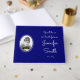 Este sencillo libro de visitas funerarias o conmemorativas incluye el mensaje "Estarás en nuestros corazones para siempre", junto con un nombre personalizado, y fechas de nacimiento/muerte. También incluye una foto de un personalizado. Podría ser usado para registrar las condolencias por los parientes y amigos de alguien que ha fallecido recientemente.