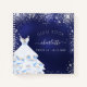 Para una dulce fiesta de 16, 16 cumpleaños. Un fondo azul marino con finos destellos de purpurina plateado, un vestido blanco y azul. El nombre está escrito con una escritura de estilo con letras a mano moderna. Personalice y agregue un nombre y una fecha.