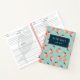 Libro de recetas dulce impreso con un patrón de melocotones de bonito sobre un fondo turquesa de poca monta. Personalice su nombre en elegantes letras retro. El libro de recetas está escrito en un guión encantador.