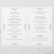 Esta elegante plantilla de programa de boda presenta esquinas ornamentadas vintage. El color del diseño está configurado en gris, pero puede cambiar el color del diseño cambiando el color de fondo. **CÓMO CAMBIAR EL COLOR DE SU DISEÑO** 1) Haga clic en el botón "Personalizar". 2) Haga clic en el enlace "HAGA CLIC PARA PERSONALIZAR MÁS" en la parte inferior. Luego tendrá la opción de cambiar el "COLOR DE FONDO" al color de su boda. No olvide cambiar el color del texto para que coincida con su diseño.