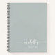 Cuaderno de Recetas Personalizado Minimalista Verde Sage Elegante Nombre Monograma Firma Script Personalizado. Estos diseños presentan su primer nombre en una bonita tipografía de letra manuscrita con cola de milano en un fondo de color verde sage o verde polvoriento. Estos son fáciles de personalizar y pueden ser utilizados como Libro de Cocina, Planificador de Recetas y más. También es un regalo femenino elegante ideal para cumpleaños, boda, día de la madre, despedida de soltera, aniversario y para cualquier persona que ame el estilo glamuroso.