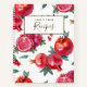 ¡Saboree y guarde todas sus recetas favoritas en su propio libro de recetas! Mantén el libro de recetas a mano para que todos en la familia puedan preparar un delicioso plato, anotar todas tus recetas tradicionales y originales como pasteles para repartir a tus hijos y nietos. La cubierta del libro de recetas de Personalizable Pomegranate Rojo incluye ilustracion acuarela de granada y follaje de color rojo fresco.