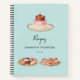 Un hermoso libro de recetas de postres retro vintage con ilustraciones sobre un fondo azul polvoriento. Personaliza el libro de cocina a tu nombre y número de volumen. Regalo perfecto para amantes de la comida, cocineros, chefs, amantes de la comida y la cocina.