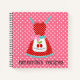 Adorable libro de notas de la receta con aspecto retro. Personalizar el color de fondo rosado. Los puntos de polka blancos con un delantal azul, rosa y rojo muy querido. Personalizó los nombres. La parte de atrás muestra una imagen de un pastel de capas, con las palabras "horneo porque golpear a la gente está mal visto". Este cuaderno en espiral es un regalo maravilloso para el cocinero o panadero del hogar. Para ver otros productos para un chef o panadero - Por favor visite "The Hungarican Princess - A Boutique™" @zazzle.com/hungaricanprincess.
