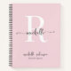 Cuaderno de recetas personalizado con nombre inicial monograma elegante minimalista en rosa suave. Este diseño simple y minimalista de color liso presenta su primer nombre en una hermosa tipografía de letra manuscrita con florituras (o caligrafía), monograma inicial de nombre completo y plantilla de línea de texto en blanco y gris sobre fondo rosa suave o rosa bebé claro. Estos son fáciles de personalizar y se pueden utilizar como libro de cocina, planificador de recetas y más. También es un regalo femenino elegante y con estilo para cumpleaños, regalo de inauguración, día de la madre, despedida de soltera, boda, aniversario y para cualquier persona que ame el estilo elegante y chic.