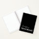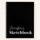 Mantén tu arte en este moderno bloc de notas del libro blanco negro personalizado. Es moderno y está decorado con un fondo negro en la parte delantera y trasera. La parte frontal tiene el nombre en letra de guión con letras grises y el texto "cuaderno de bocetos" en letras blancas en negrita. Haga clic en la opción personalizar plantilla e introduzca el nombre.
