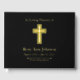 Conmemorar la vida de un ser querido con este elegante libro funerario acentuado por el Relieve metalizado. Con una cruz, un nombre y unas fechas, el diseño se sitúa en un fondo negro clásico con detalles refinados de Relieve metalizado dorado para un aspecto atemporal. Los huéspedes pueden dejar mensajes, recuerdos y condolencias, lo que crea un recuerdo duradero para la familia. Ideal para servicios conmemorativos, funerales y celebraciones de la vida.