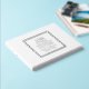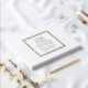 Libro de boda blanco, de estilo sencillo, con estilizado Relieve metalizado de plata impreso dentro de un Relieve metalizado plateado, borde cuadrado que muestra los nombres de la pareja y fecha de aniversario boda. Edite su libro de invitados reemplazando los nombres y la fecha por los suyos. Seleccione su estilo de libro de invitados.