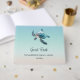 Elegant AI created turtle on a serene turquoise sand background and a custom lake house guest book text.