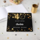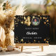 Un elegante fondo negro con estrellas de oro falsas. Agrega tu foto, nombre y texto. El número de edad se escribe con un tipo de letra de estilo globo. Espina: agrega tu texto.