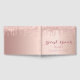 Un libro de invitados para una fiesta de 50 años de niñez y glamour. Un falso fondo dorado rosa con un elegante purpurina de oro falso rosa gotea, pinta goteo. El texto: El nombre y el título: El libro de invitados está escrito en oro rosa oscuro con una escritura de estilo moderno con letras a mano. Tempate por una fecha y 50 años.