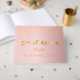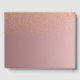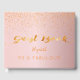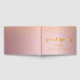 Un libro de invitados para una glamorosa fiesta de cumpleaños número 50 y fabulosa. Un fondo de degradado de rosa polvoriento de moda con salpicaduras de confeti dorado. El texto: Libro de invitados está escrito con letras de oro falsas. El nombre se escribe con un guión de estilo con letras a mano. Plantilla para el texto en la columna vertebral.