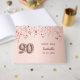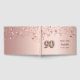 Un libro de visitas para una fiesta de cumpleaños 90 de chicas glamorosas. Un falso fondo dorado rosa con oro subió, estrellas goteantes rosadas. Personalice y agregue un nombre y una fecha. El nombre está escrito en oro rosa oscuro con una escritura de estilo moderno con letras a mano. El número 90 se escribe con un tipo de letra de estilo globo.
