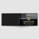 Este diseño incluye una bandera de la fuerza policial con rayas blancas y negras, y una delgada franja azul. Una gran manera de felicitar al nuevo graduado de la academia de policía. Personalizar con el nombre del oficial encargado de la aplicación de la ley graduado en oro. ¡Celebra este hito con estilo!