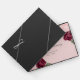 Elegante libro de invitados para el funeral/funeral de una acuarela de color rojo y rosa con una cruz de plata, rosas color de agua rojo y rosa y flores del aliento del bebé en un fondo de color negro.