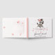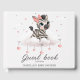 Cute baby shower or birthday guest book featuring adorable little female zebra wearing a cute pink bow with some love hearts