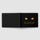 Los ojos dorados perdidos son todo lo que se puede ver de un gato negro. Añadir impresión a la columna vertebral. Personalizar todo el texto.