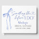 Algo de Blue Bow Bridal Shower Brunch Guest Book Este encantador libro de huéspedes con ducha de novia azul Bow cuenta con un arco de cinta azul pintado a mano con caligrafía moderna, una hermosa manera de acentuar tu día especial. ¡Edite fácilmente la mayoría de los términos para que coincidan con su evento! Los colores del texto y del fondo son editables >>> Pulse el botón "Editar usando la herramienta de diseño" para editarlo.
