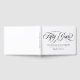 Libro de firmas de aniversario de bodas elegante y blanco para una celebración de aniversario de bodas de oro con una letra de caligrafía negra y retorcida y sus nombres en una fuente elegante. Libro de firmas de aniversario de bodas de oro personalizado con sus nombres, fecha de bodas y una cita. Celebración de aniversario de bodas de oro con libro de firmas impreso con sus nombres en negro sobre un fondo blanco.