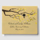 Celebra un cincuentenario de bodas con este hermoso libro de invitados. Este diseño representa un árbol con hojas doradas y aves amorosas. Personalizar la redacción de la parte delantera, trasera y espina dorsal para hacer una especie de agudo. Diseño vectorial original de Night Owl's Menagerie, 2017.
