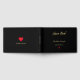 Crea tu propio personalizado, personalizado, simple, hermoso y elegante Relieve metalizado real imitación tipografía de oro / guión / letra / caligrafía en negro, corazones rojos, libro de visitas boda / aniversario, con cubierta hecha de papel premium realzada con lujoso revestimiento de terciopelo. En la parte de atrás se muestran los nombres de la pareja con sus iniciales en oro falso de Relieve metalizado real en un corazón rojo. Simplemente teclee los nombres de la novia y del novio o de la esposa y marido, la fecha del boda/aniversario y las iniciales de la pareja. al personalizar. Un bonito, elegante y especial placer, para que tus invitados escriban sus pensamientos y mantengan los recuerdos frescos como ayer. Eleva tu ocasión especial, captura mensajes sentidos, buenos deseos y recuerdos con estilo y gracia con este libro de personalizados, personalizado para ti.