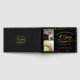 Celebre cualquier aniversario de bodas con un libro de invitados personalizado en negro y dorado para la pareja especial. El diseño presenta una tipografía de escritura en caligrafía elegante de # AÑOS EN PARA SIEMPRE acentuada con corazones entrelazados y confeti dorado falso y personalizado con 2 fotos, sus nombres y fecha de bodas u otro texto personalizado. El título es editable para usar en cualquier aniversario. CAMBIOS: Cambie el color de fondo negro, elija un fondo de gráficos con estilo o cambie el estilo de fuente de texto, color, tamaño y ubicación haciendo clic en PERSONALIZAR MÁS en la sección PERSONALIZAR. Contacte al diseñador a través de Zazzle Chat o makeitaboutyoustore@gmail.com si desea que se modifique este diseño, en otro esquema de color, en otro producto o si desea artículos coordinados.