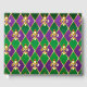 joyas, fondo del Mardi Gras de rhombus violeta y verde, lirios dorados decorados.
