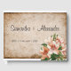 Un libro de bodas floridos muy bonito con una temática vintage. Se percibe una moda anticuada y de mal gusto, con un magnífico montón de mentiras de albaricoque en el rincón inferior, más flores en la columna vertebral del libro y los monogramas de la novia y el personalizado del novio en la parte posterior, todo ello sobre el fondo de un papel vintage, un patrón de papel marrón.