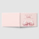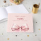 Un color de fondo rosa pálido. Decorado con un lazo rosa grande. Personaliza y añade un nombre, texto.