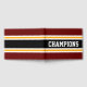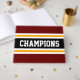Este colorido y deportivo diseño presenta texto de CHAMPIONS atlético dentro de una amplia franja de carreras horizontal en el centro negro con franjas claras de color amarillo y blanco frente a rayas de borde exterior rojas profundas. Los colores y el texto de este diseño se pueden personalizar.