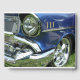Auto azul 1957 Chevy Vintage con motor cromado.