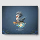Ave gruñón el lunes. Un pájaro divertido y estilizado que se ve tan sombrío que ni siquiera el sol se atreve a sonreír. Su plumaje es una mezcla caótica de azul, blanco y gris, como si se hubiera arrojado a una olla de pintura cuando se levantó. Al lado hay una taza de café con el ingenioso dicho "Es lunes, no es mi día". Esta taza bien podría tener un cartel que dijera: "¡Ayuda! ¡Realmente necesito unas vacaciones!" Es claro, con una paleta de colores alegre y flores florecientes, hasta el pájaro más gruñón será la estrella del lunes