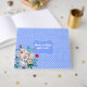 libro de bodas bonitos realizado en un azul real con pequeños puntos de polka blanco y un bonito ramo de flores pintado, en la parte delantera y trasera. Personalice los campos de texto del personalizado para su día de boda. Hay productos que coinciden.