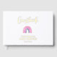 Celebra la llegada de tu pequeño paquete de alegría con nuestro libro de invitados de Relieve metalizado Baby Shower Chica arcoiris. Este conservador bellamente diseñado preservará mensajes, bendiciones y recuerdos sentidos de sus seres queridos en su día especial. Decorado con un suave motivo arcoiris pastel, perfecto para una alegre y caprichosa ducha de bebé. Asombroso acento de Relieve metalizado: Elegante Relieve metalizado metálico en la cubierta añade un toque de sofisticación y brillo. Una combinación perfecta de elegancia y encanto para una ducha de temática de niña; hace un gran placer para que tu familia aprecie y revisite en los años venideros; Ideal para las duchas temáticas, sobre todo con decoración de tonos pastel o arcoiris.