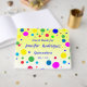 Los alegres círculos de polka punteados en colores de fiesta, como amarillo, verde, turquesa, azul, rojo, naranja y rosa, son el tema de este libro de huéspedes de Quinceañera. Personaliza el texto para tu ocasión especial.