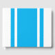 Este divertido y deportivo diseño cuenta con amplias rayas de carreras de color azul celeste sobre un fondo blanco resplandeciente.
