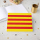 Este artículo presenta las icónicas franjas roja y amarilla de la bandera catalana. Cataluña (Cataluña) es una comunidad autónoma en el noreste de España que tiene un fuerte movimiento nacionalista que busca la independencia de la región. La ciudad más grande de Cataluña es Barcelona, situada en la costa del mar Mediterráneo.