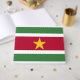 Este diseño presenta la bandera nacional de Surinam (conocida oficialmente como República de Surinam), un país en la costa del noreste del Atlántico de Sudamérica. Suriname está rodeado por el océano Atlántico al norte, la Guyana Francesa al este, Guyana al oeste y el Brasil al sur. Surinam es el estado soberano más pequeño de Sudamérica. La mayor parte de la población del país vive en la costa norte, en la región de Paramaribo, la capital de Suriname y la ciudad más grande.