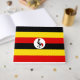 Este diseño presenta la bandera nacional de Uganda (conocida oficialmente como la República de Uganda), que es un país sin litoral del África central-oriental. La región sur de Uganda incluye una parte sustancial del lago Victoria, compartido tanto con Kenia como con Tanzania. Uganda está en la región de los Grandes Lagos de África; Uganda también se encuentra en la cuenca del Nilo. Uganda limita al este con Kenya, al norte con Sudán del Sur, al oeste con la República Democrática del Congo, al sudoeste con Rwanda y al sur con Tanzanía. La capital de Uganda es Kampala, que también es la ciudad más grande del país. Otras ciudades y pueblos importantes de Uganda son Nansana, Kira, Ssabagabo, Mbarara, Mukono, Njeru, Gulu, Lugazi, Masaka, Kasese y Hoima.