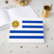 Este diseño presenta la bandera nacional de Uruguay, que es un país en la región sureste de Sudamérica. El Uruguay limita con la Argentina al oeste y al suroeste, el Brasil al norte y al este, el Río de la Plata al sur y el Océano Atlántico al sudeste. La capital de Uruguay es Montevideo, que también es la ciudad más grande del país. Otras ciudades y pueblos importantes en Uruguay son Salto, Ciudad de la Costa, Paysandú, Las Piedras, Rivera, Maldonado, Tacuarembó, Melo, Mercedes, Artigas, Minas, San José de Mayo, Durazno, Florida, Barros Blancos, Ciudad del Plata y San Carlos.