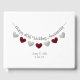 Libro de invitados de aniversario de bodas de plata dorada personalizable blanco con banderín de corazón rojo y plateado.